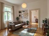 PRODÁNO. Prostorný zařízený nábytkem byt 2+1, 110 m 2 + 2 balkony, ve čtvrtém patře sedmipatrové budovy s výtahem, přímo u metra Křižíkova, v srdci pražské moderní čtvrti Karlín. .
