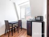 Studio ve čtvrtém nadzemním podlaží činžovního domu s výtahem je orientováno do klidného vnitrobloku. V obývacím pokoji je praktické spací patro, šatní skříň, pohovka a na podlaze jsou zachovalé dřevěné parkety.Kuchyňský kout je zařízen vařičem a lednicí. Koupelna disponuje vanou,....
